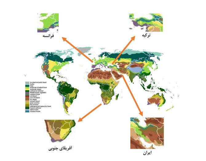 بر این اساس در مرحله اول کشورهای دارای مشابهت با ایران از شرق به غرب مانند استرالیا، چین، هندوستان، قزاقستان، عراق، ترکیه، سوریه، آفریقای جنوبی، تونس، فرانسه، اسپانیا، مراکش، ایالات متحده ، مکزیک و آرژانتین انتخاب شده است.