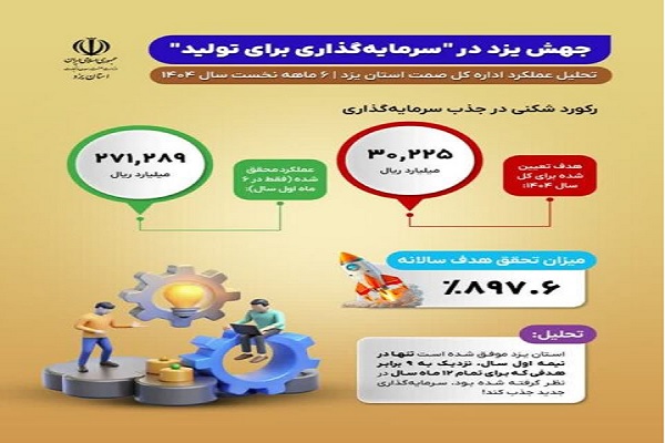 به گزارش روابط عمومی اداره کل صنعت، معدن وتجارت استان یزد، این در حالی است که هدفگذاری تعیینشده برای کل سال ۱۴۰۴، جذب ۳۰ هزار و ۲۲۵ میلیارد ریال سرمایهگذاری بوده و عملکرد استان در شش ماه نخست، حدود ۹ برابر کل هدف سال محسوب میشود. چنین موفقیتی نشاندهنده حرکت پرشتاب بخش صنعت یزد در مسیر توسعه و رونق تولید است.