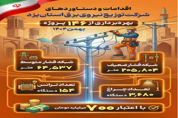 اینفوگرافی تازه منتشرشده از عملکرد شرکت توزیع نیروی برق استان یزد، تصویری روشن از جهش فنی، توسعه زیرساختها و افزایش تابآوری شبکه برق استان ارائه میدهد؛ تصویری که نشان میدهد برق یزد با تکیه بر مدیریت هوشمند، کاهش خاموشیها و توسعه شبکه، گامهای بلندی بهسوی پایداری انرژی و امنیت تأمین برداشته است.